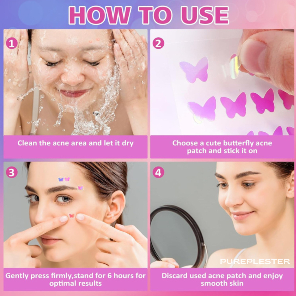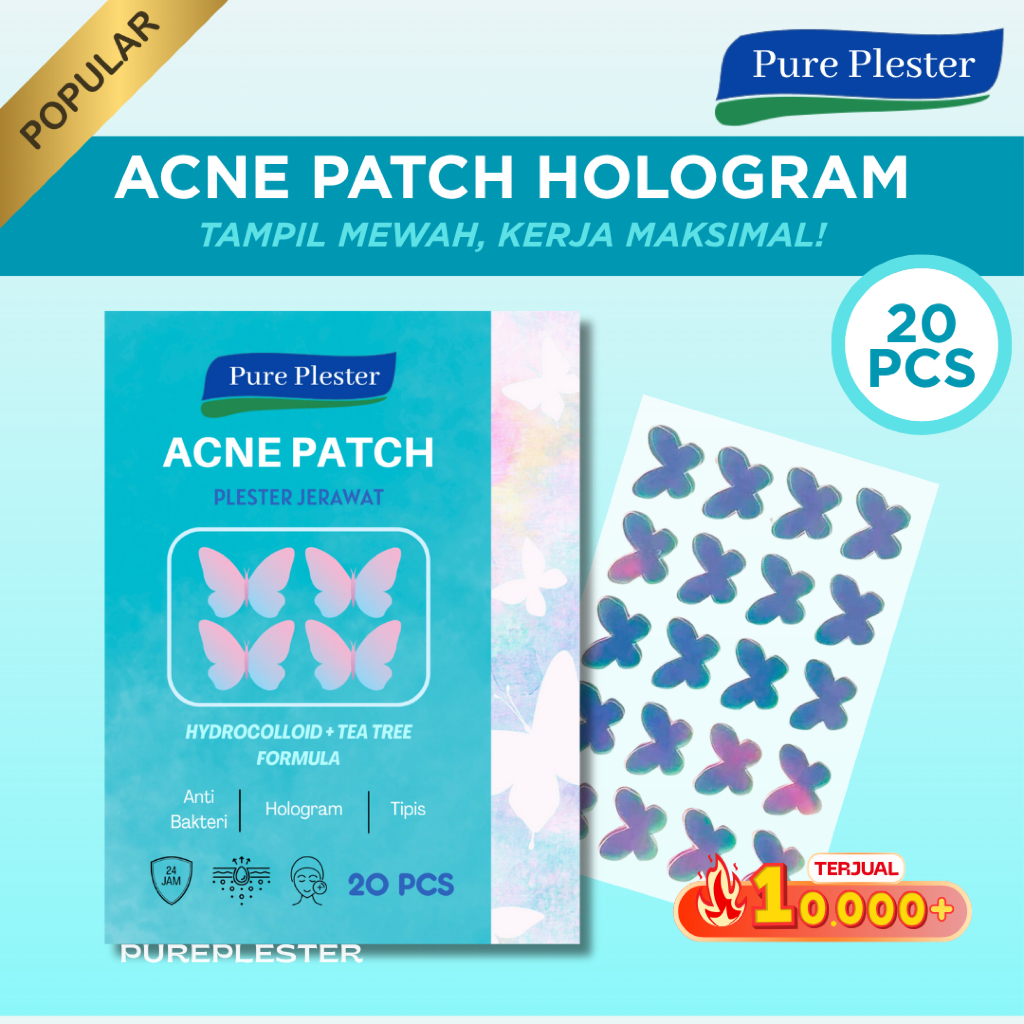 Pure Plester Acne Patch Hologram 20 Pcs / Plester Jerawat Pagi dan Malam - Ultra Thin Hidrokoloid Kupu Kupu