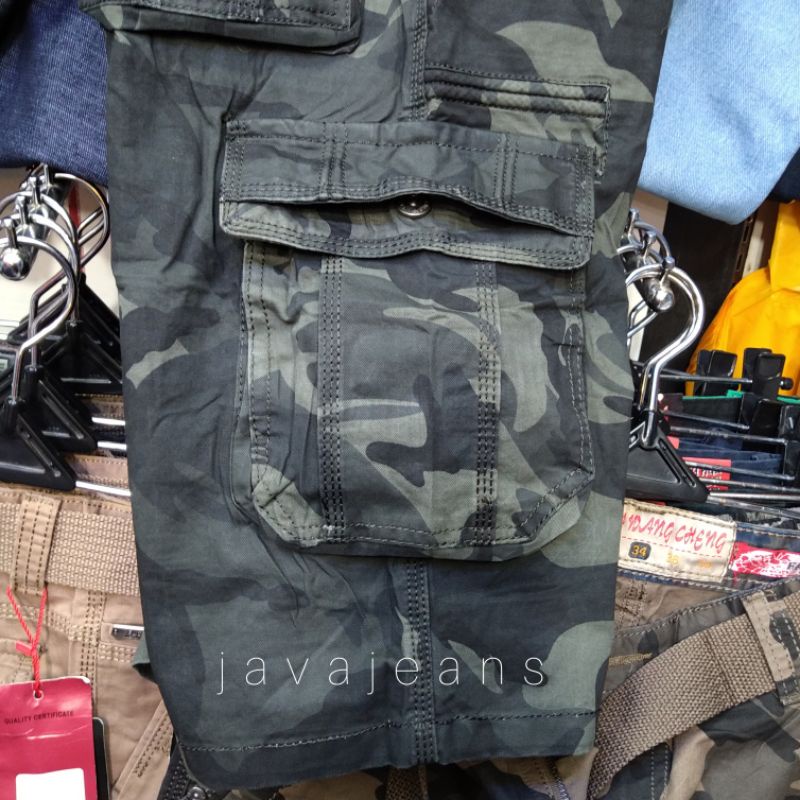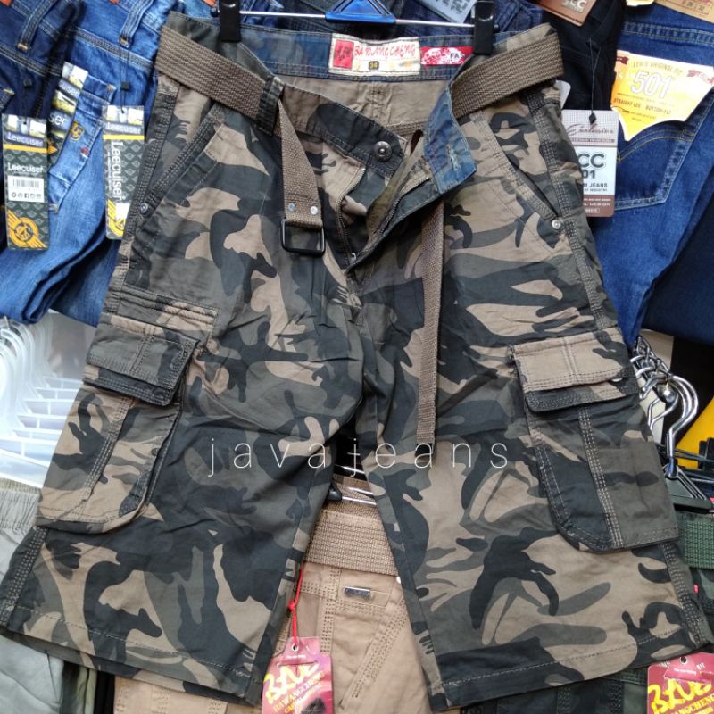 Celana Pendek Cargo Import Bawang Cheng Original Motif Army Loreng Free Ikat pinggang