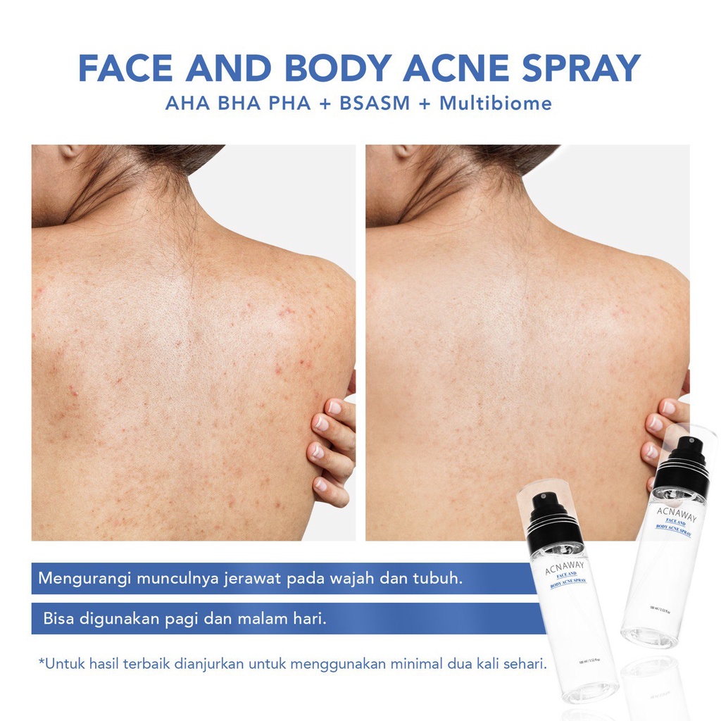 ACNAWAY Acne Face & Body Spray – Face Mist Spray Jerawat untuk Wajah & Badan | Skincare Calming Spray dengan AHA BHA PHA