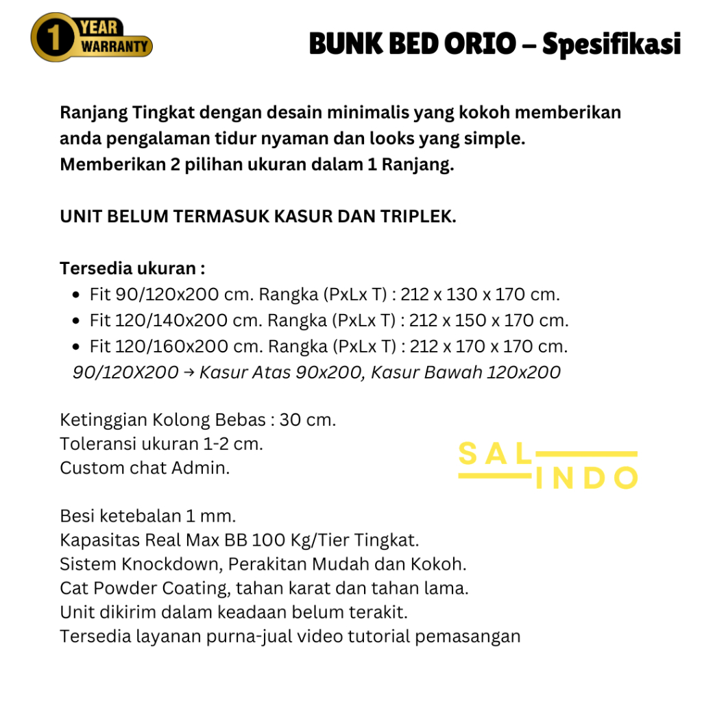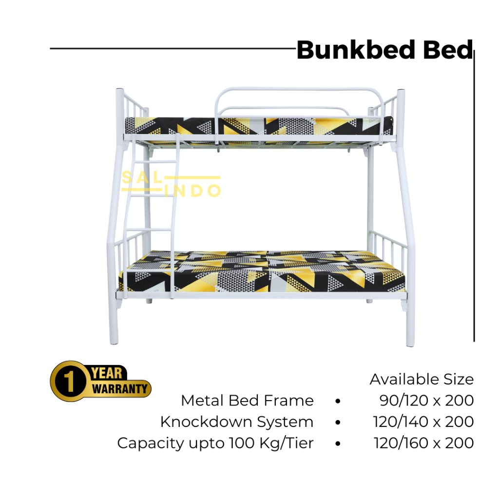 RANJANG SUSUN BESI 2 TINGKAT ORIO BUNKBED UKURAN 90X120X200 DIVAN KASUR TEMPAT TIDUR ANAK DEWASA MURAH