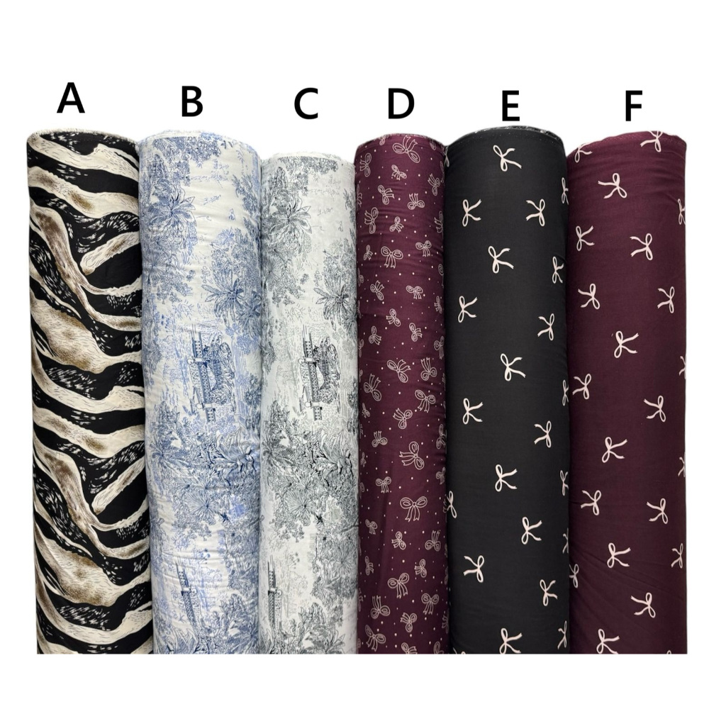 Kain katun rayon viscose premium motif abstrak motif pita hitam dan marun motif pohon macan terbaru best seller