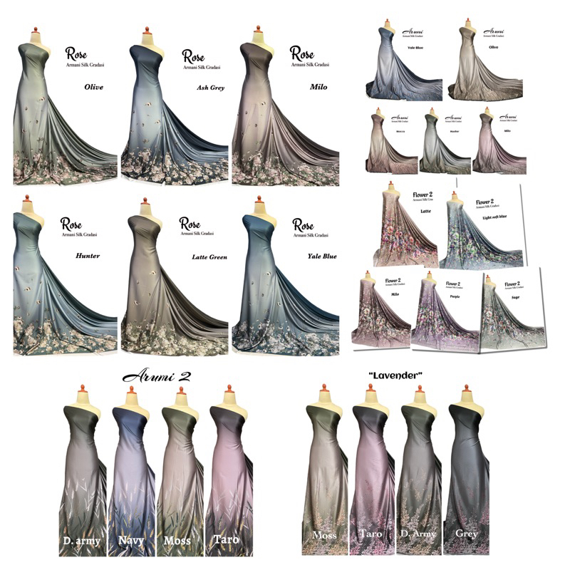 Bahan Kain Satin ARM Silk Gradasi Motif premium mewah [ harga setengah meter ] / kain silk meteran terbaru / bahan baju