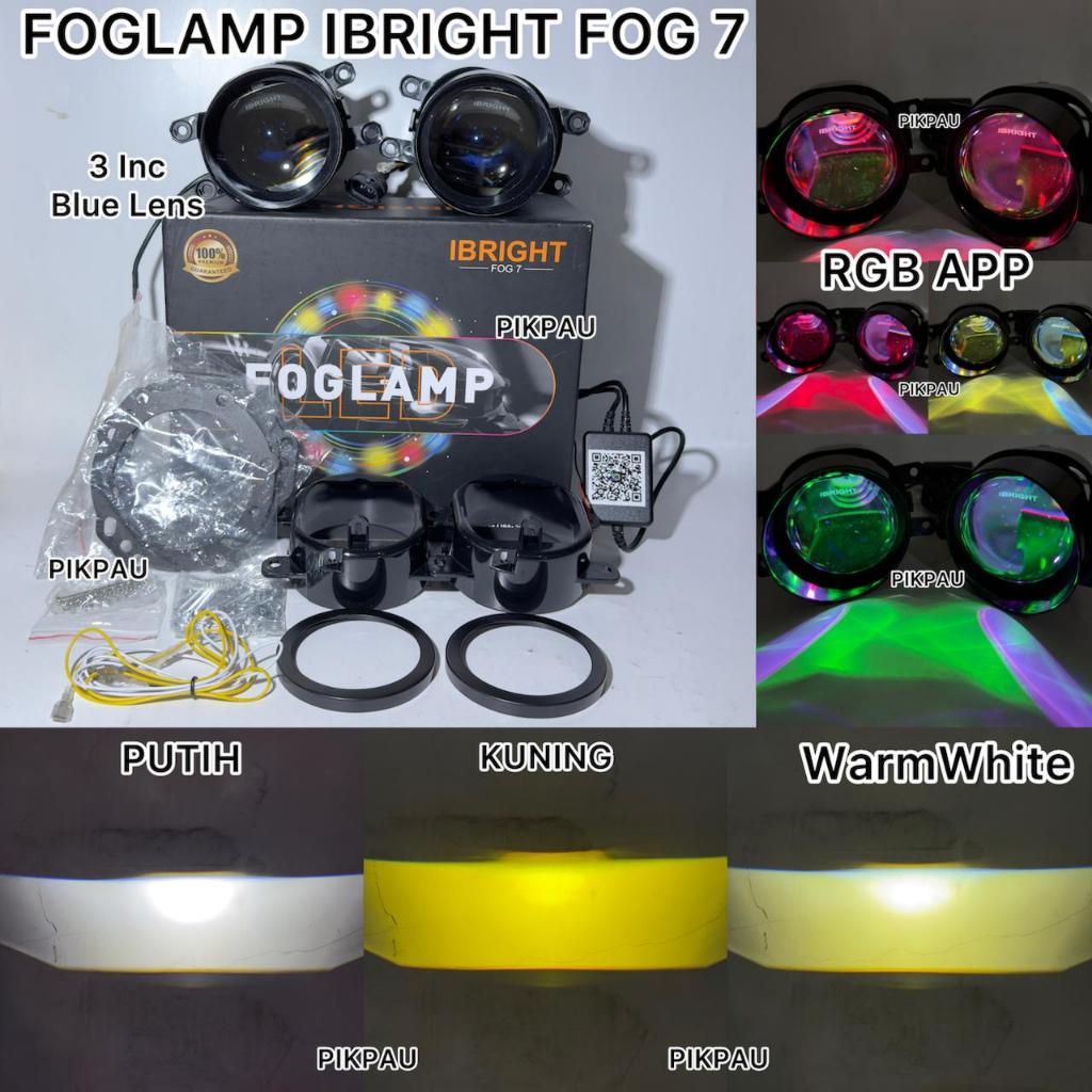 SEPASANG FOGLAMP IBRIGHT FOG 7 Devil RGB App 3 Inc Blue Lens All Weather
