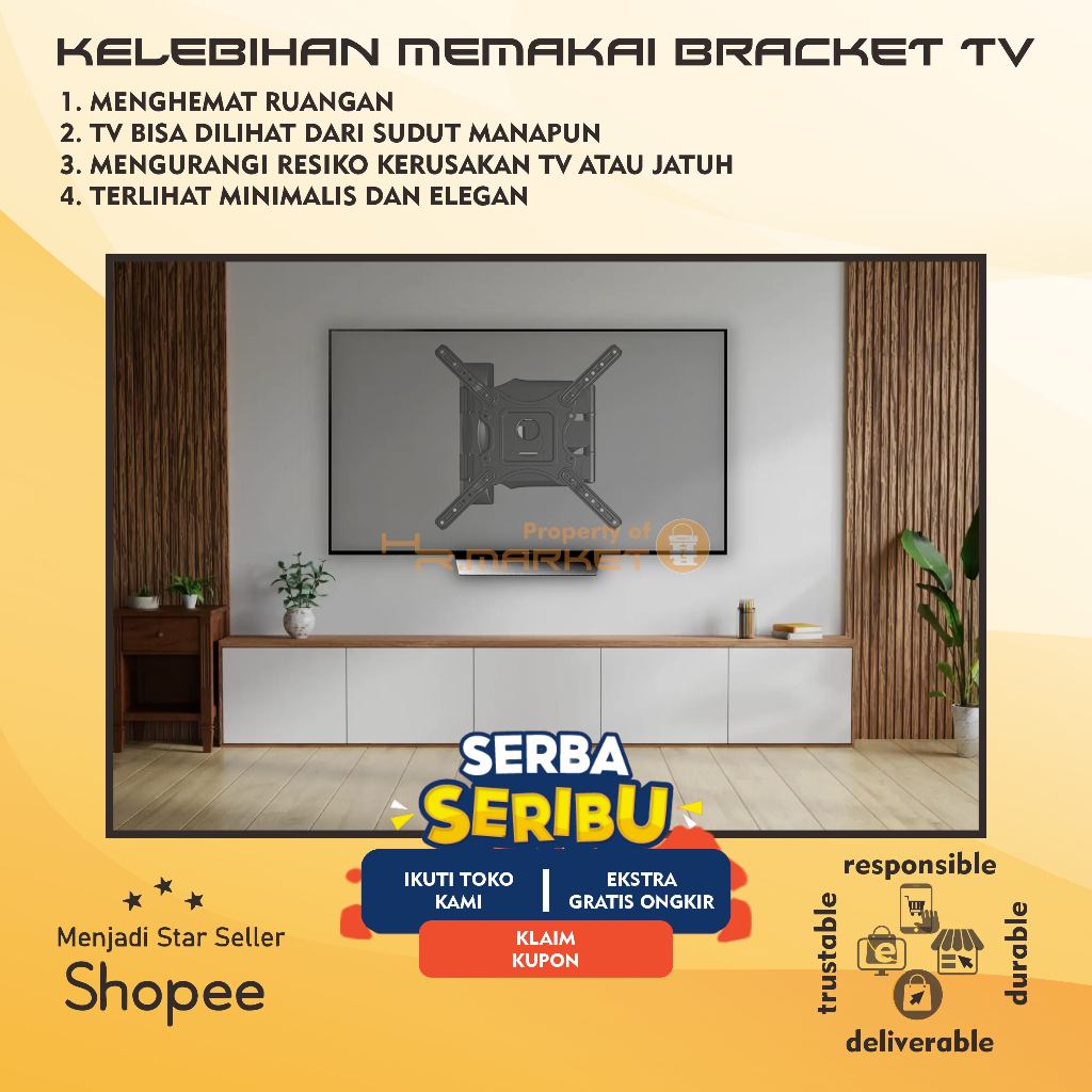 [Mall] Bracket TV LED LCD 32 40 43 55 50 42 49 Inch Dijamin Cocok 32 - 55 In 6 Arah Universal Breket TV Briket TV Braket