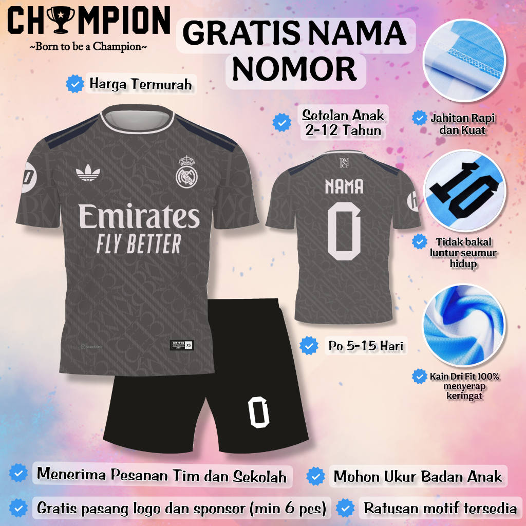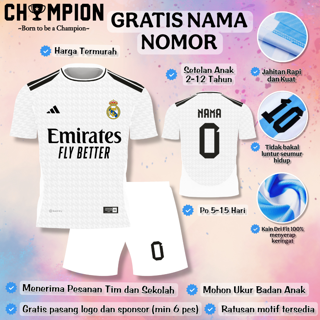 Setelan Baju Real Madrid 2026 Anak / Setelan Bola Anak / Setelan Futsal Anak