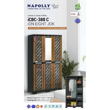 Lemari - rak baju - lemari pakaian - JUMBO - Lemari Pakaian Plastik NAPOLLY 3 Pintu Kaca Gantung Rak ICBC 388