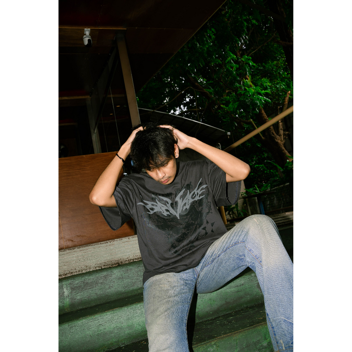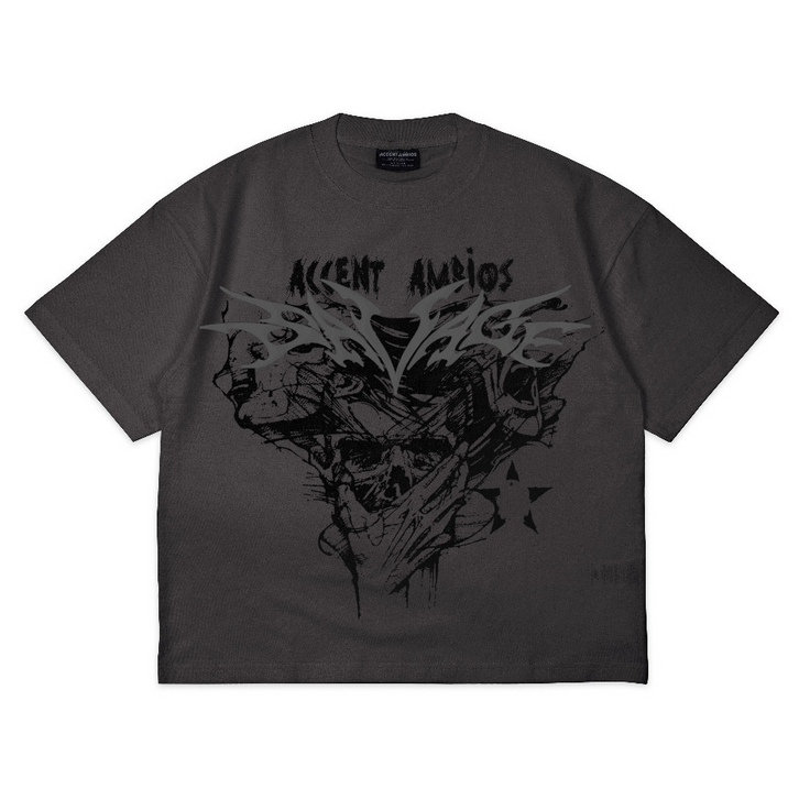 Kaos Pria Distro Bandung Original Boxy Oversized Savage Abu Tua - Katun Combed 20s