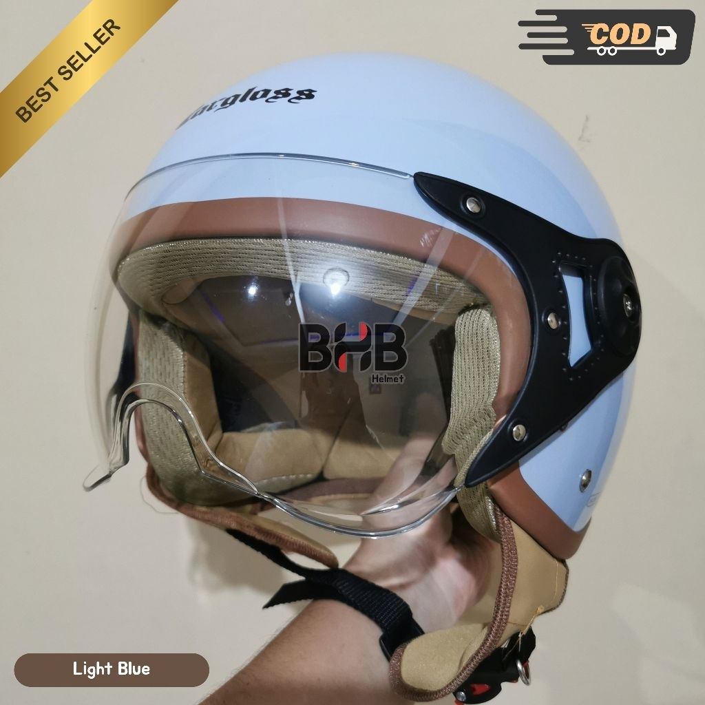Helm Hijab Anti Pusing Kaca Pilot Helm Dewasa
