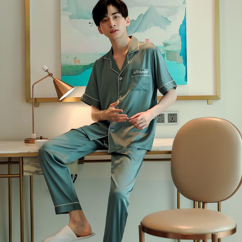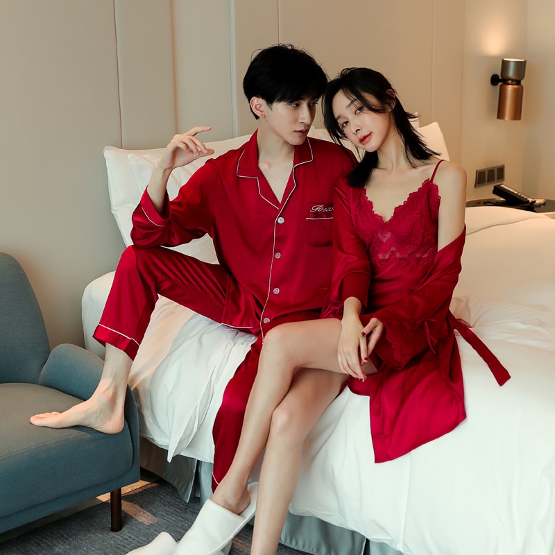 lingerie premium satin set kimono / baju tidur couple wanita seksi dan pria lengan pendek HP2202