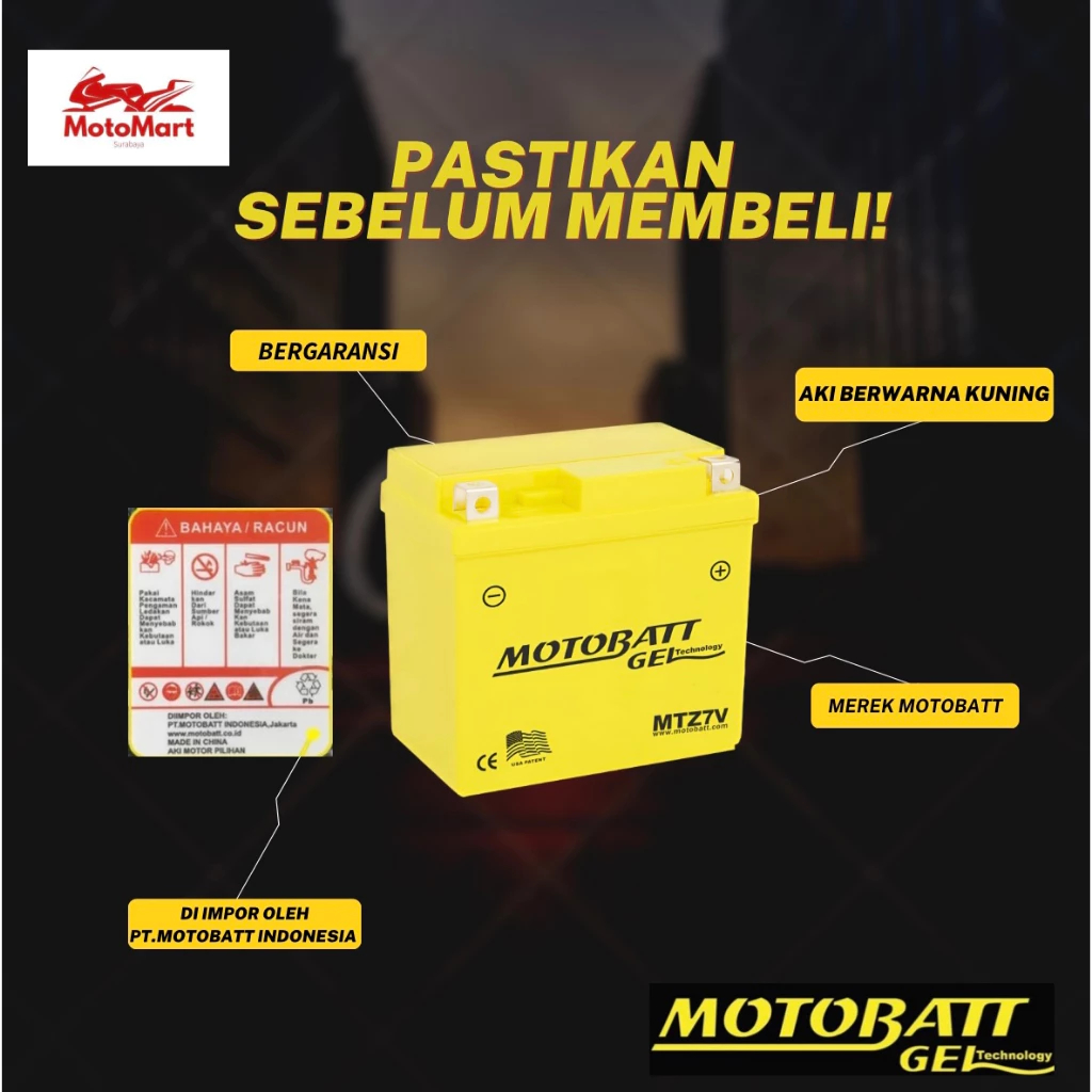 Motobatt Gel MTZ7V AEROX OLD / KLX 150 - 7Ah (Garansi 2 Bulan)