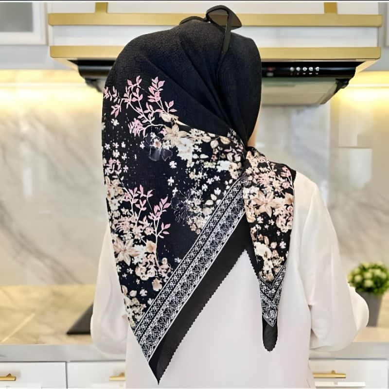 Jilbab Segi Empat Voal Motif | Hijab Segi Empat Motip | Kerudung Voal Premium Warna Hijau