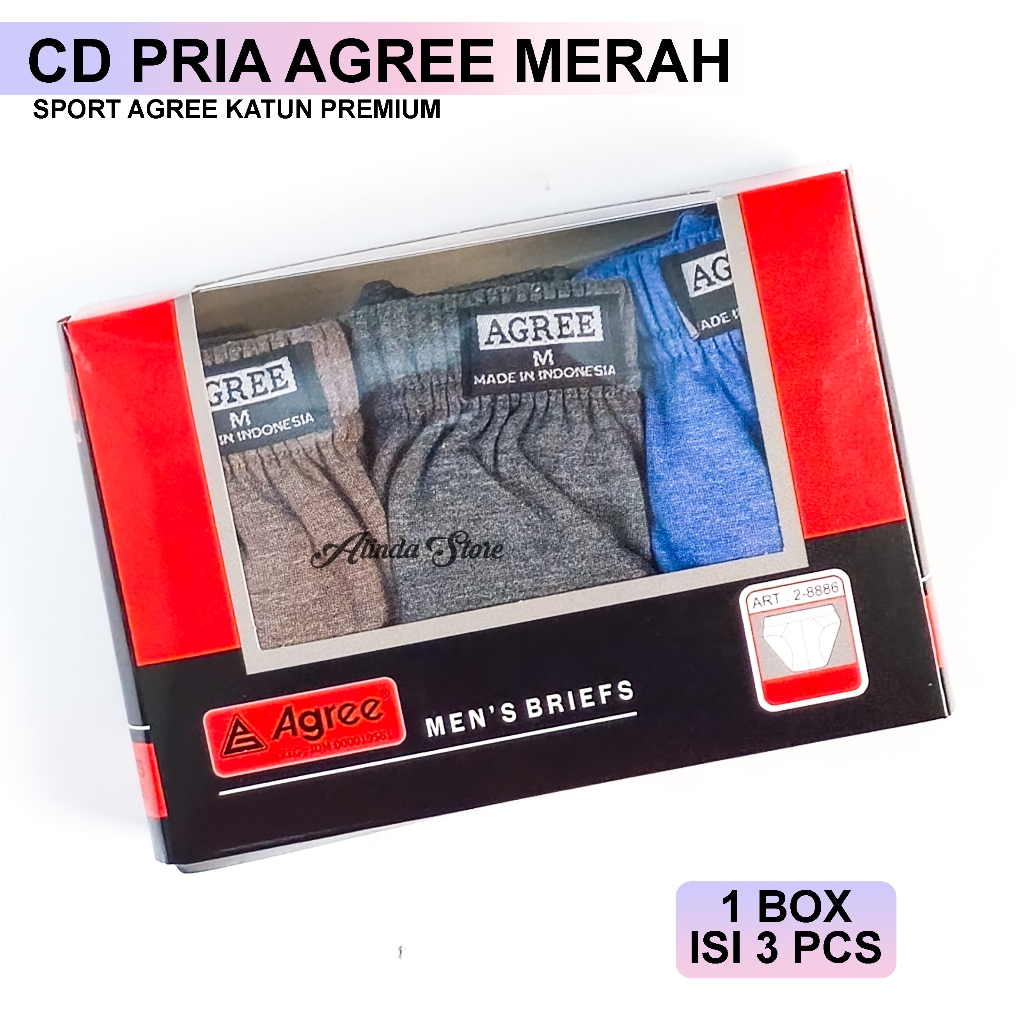 3 Box 9 Pcs Celana Dalam Pria Dewasa Agree Merah 2-8886 Set Isi 3 Pcs Brief Underwear uk M L XL XXL