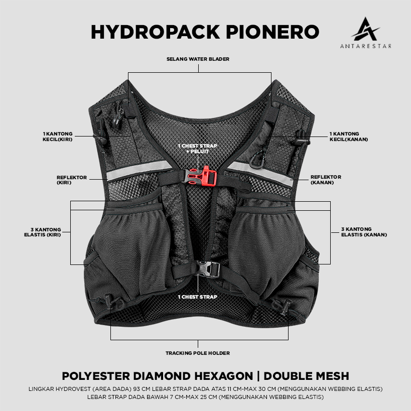Hydropack Vest Trail Running Pionero Outdoor Hydropack Ultralight Tas Trailrun Rompi Gunung Antarestar