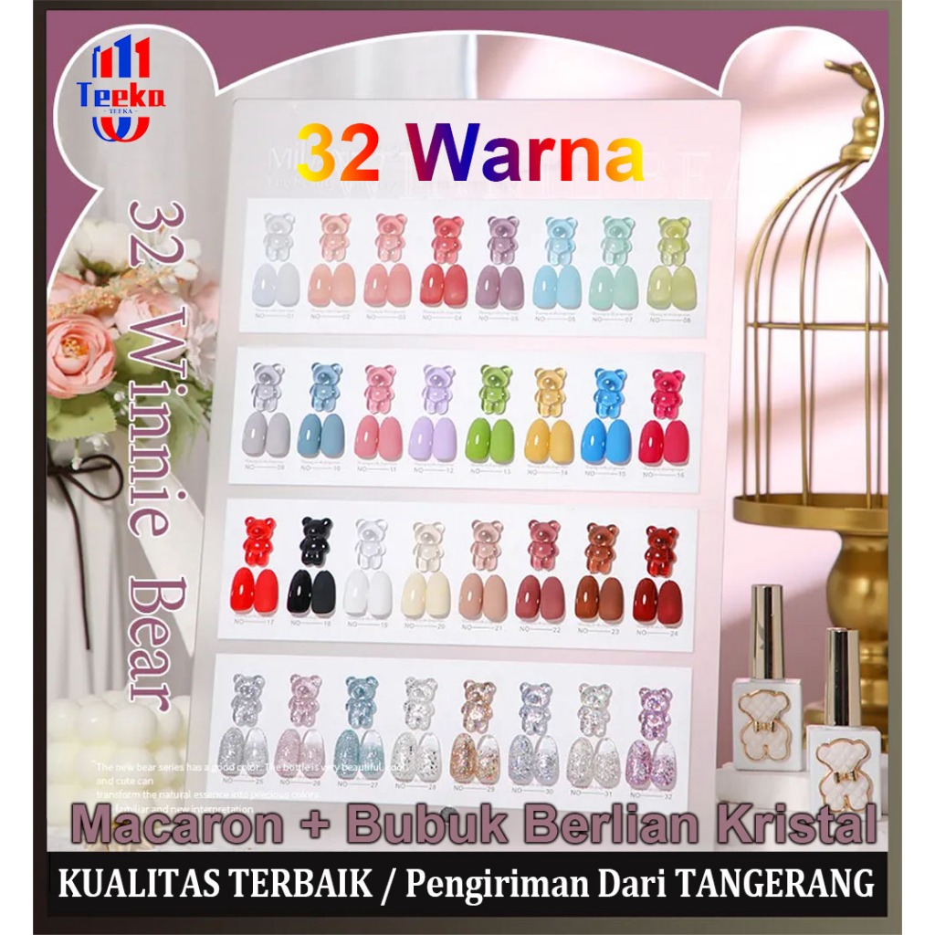 milan 15ml 32/68 Warna winnie bear Kuku Gel macaron + Bubuk Berlian Kristal Seni Kuku Mata Kucing Kit Kuku (dengan displ