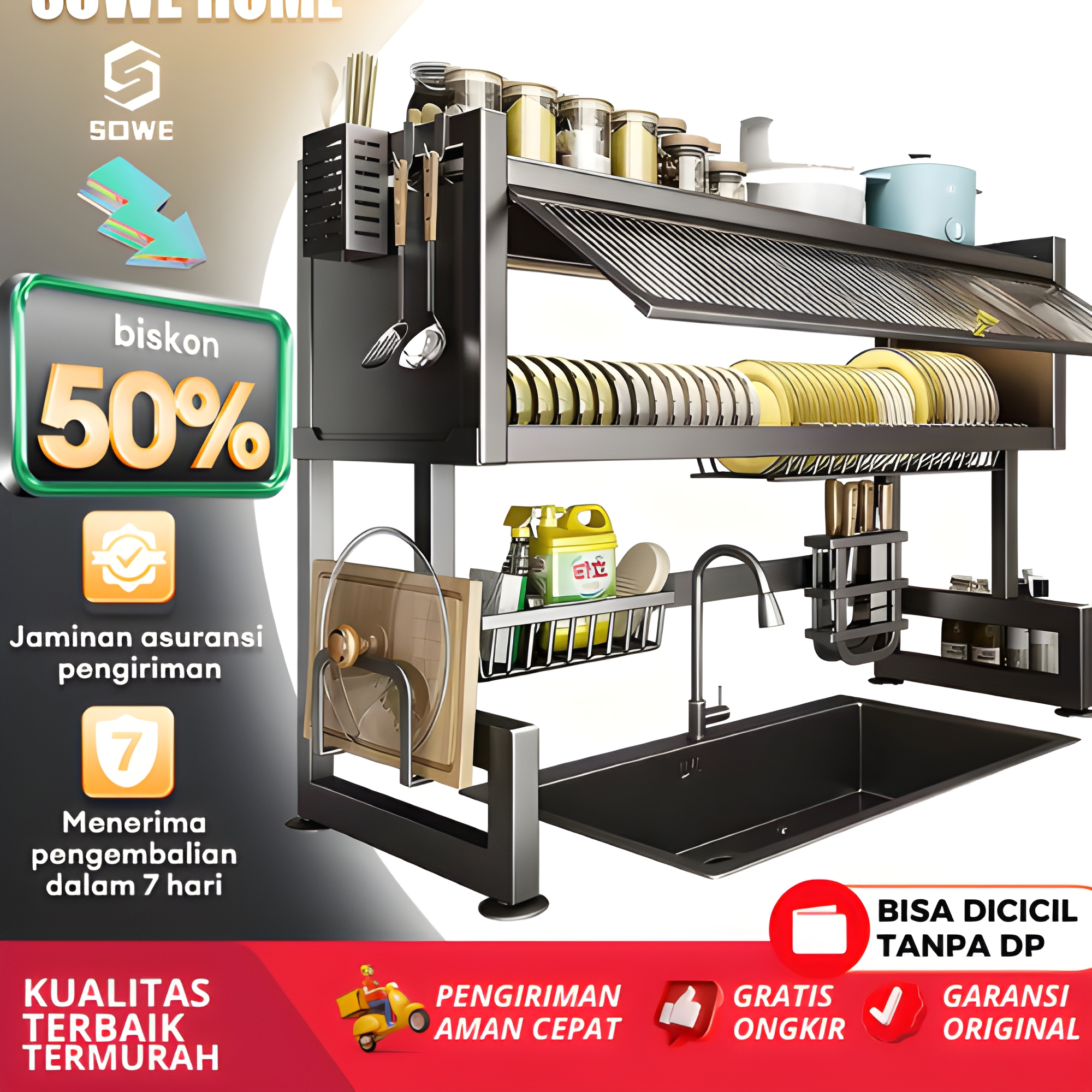 Rak Piring Minimalis Modern Wastafel Kaca Keramik Tertutup Serbaguna Alumunium Stainless 2 3 Pintu Plastik