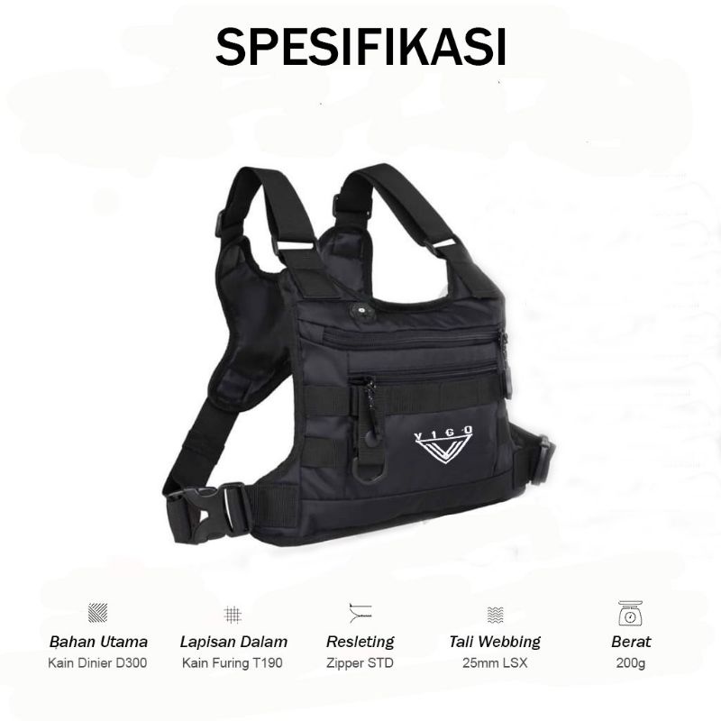 VIGO Tas Rompi Dada Chest Bag Pria Wanita Dewasa Multifungsi Outdoor Travelling Warna Hitam