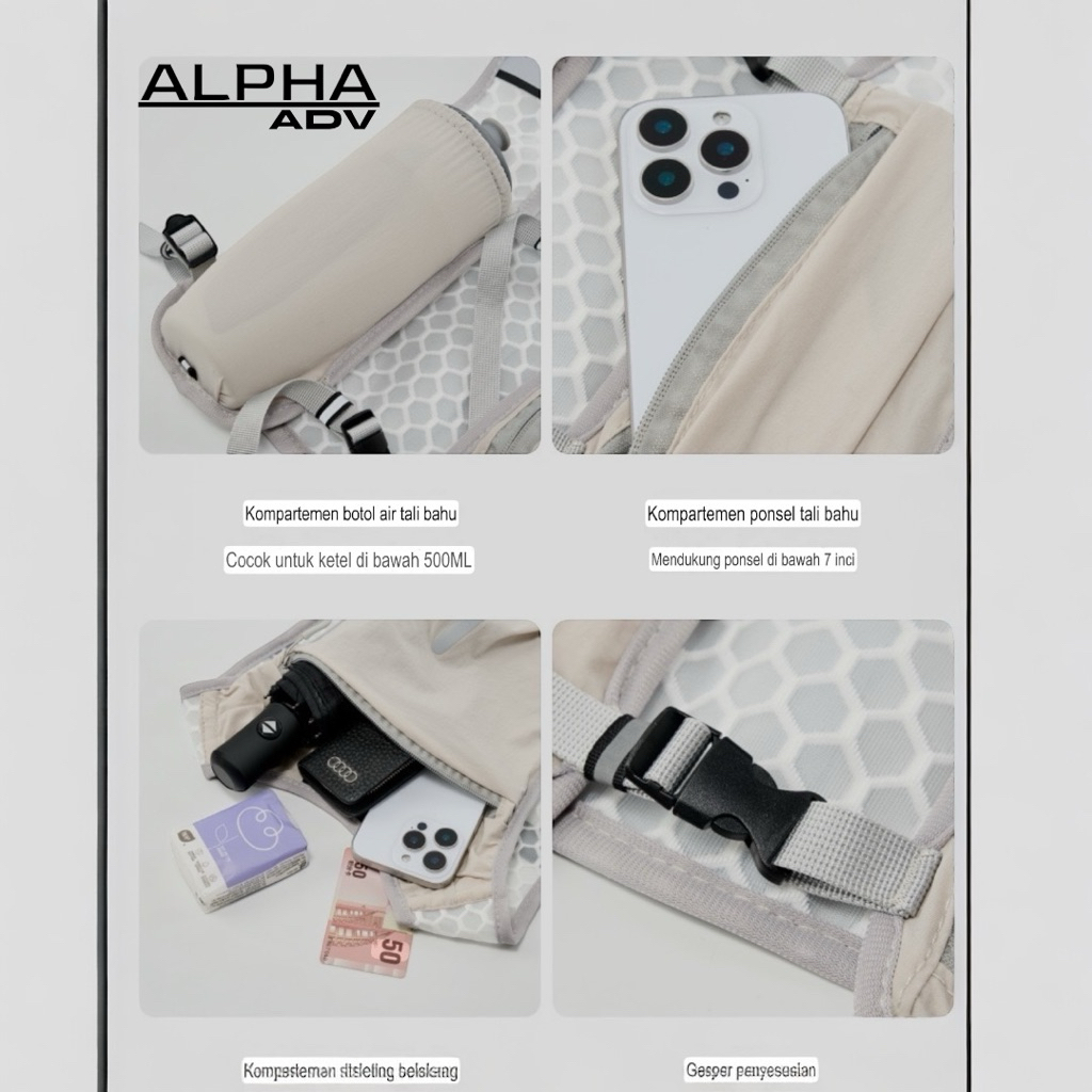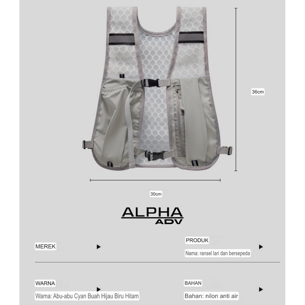 ALPHA ADV Ransel Rompi Lari Vest Running Olahraga Lari Sepeda Hiking Kapasitas Botol 500ml Waterproof