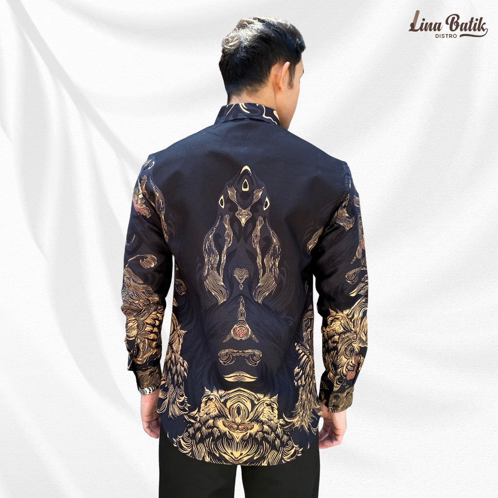 [Star] Lina Batik Distro - Fortun Remo Kemeja Batik Pria Lengan Panjang Slim Fit Modern Lapis Furing Trikot FR 22 Hitam Gold