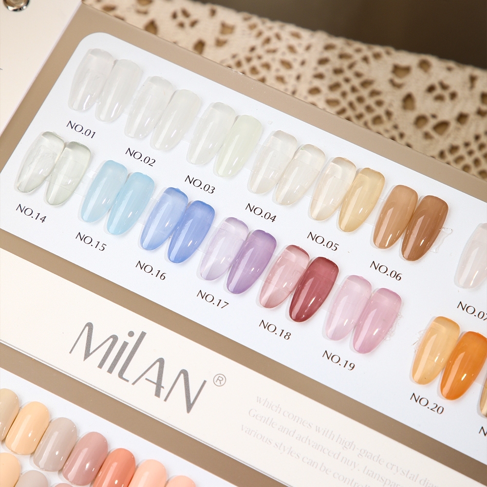 Milan 15ml 102/120/146 warna Jelly + Macaron + Diamond + Base coat + Top coat nail gel polish set (dengan Display)