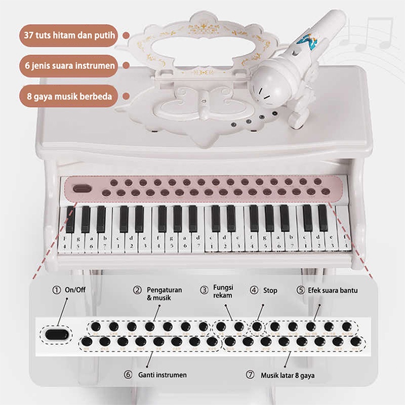 Benston music - Piano anak multifungsi, keyboard elektronik 37 tuts dengan mikrofon, mainan edukatif populer untuk bayi,