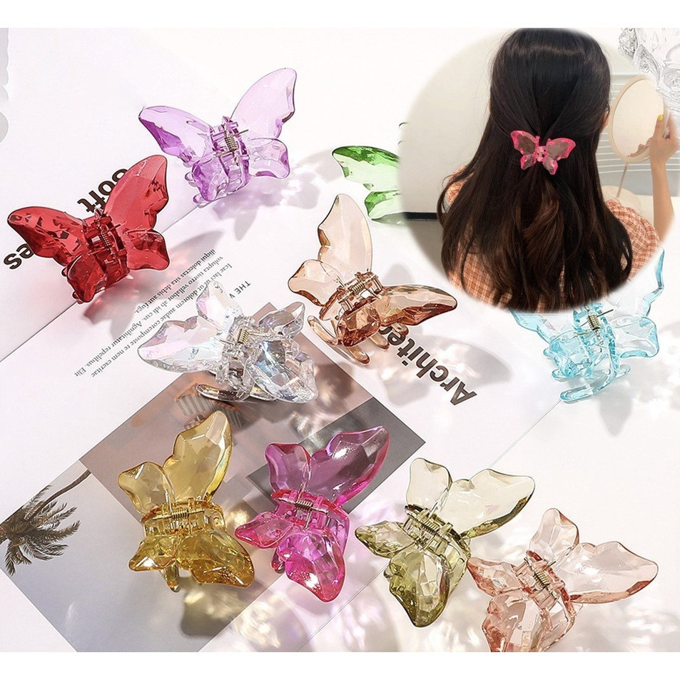 Jedai Rambut Motif Kupu-Kupu Kristal Butterfly Korean Jepit Hair Claw Transparant Hair Clip Women Fashion Hairpin Aksesoris Rambut Murah