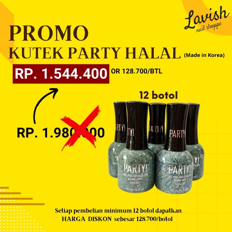 FLASH SALE TERMURAH PARTY KUTEK GEL HALAL PARTY ORIGINAL 12 pcs GROSIR