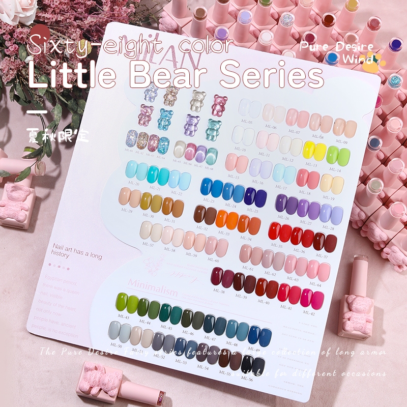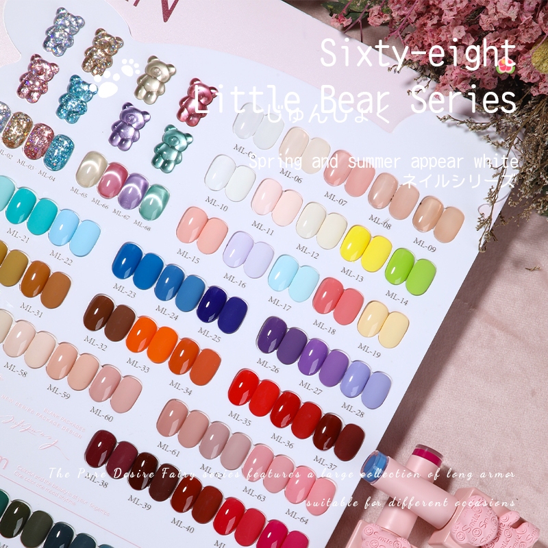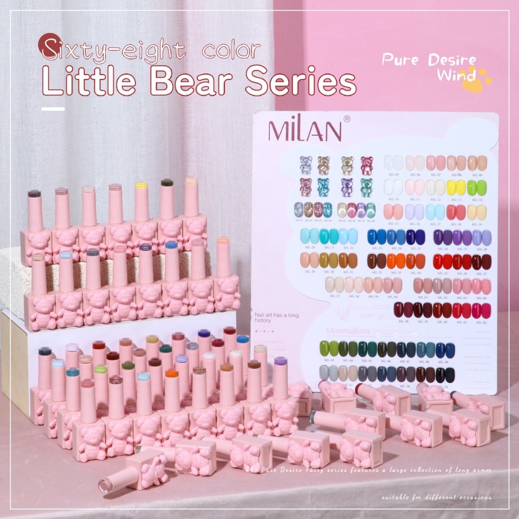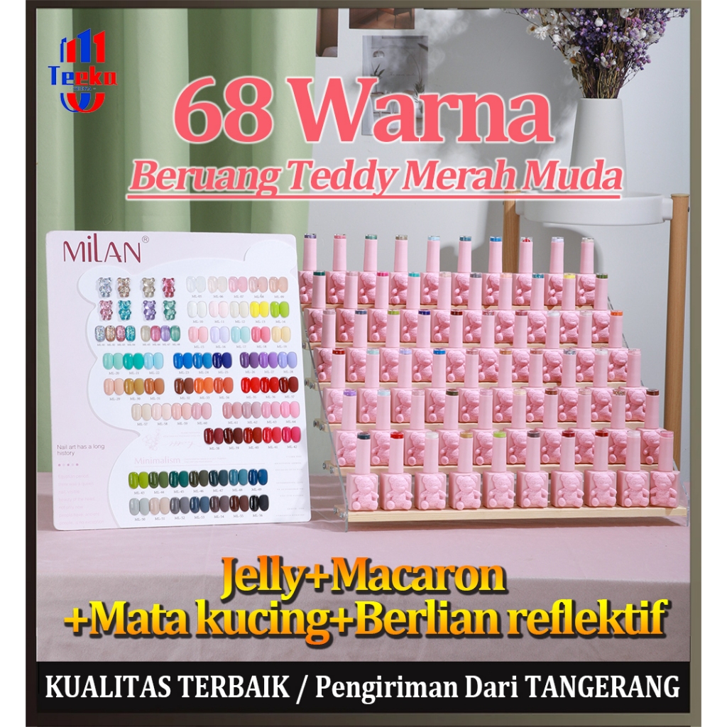 Milan 15ml 32/68 Warna Ber Teddy Merah Muda Kuku Gel Jelly+Macaron+Mata kucing+Berlian reflektif Kit Kuku (dengan displa