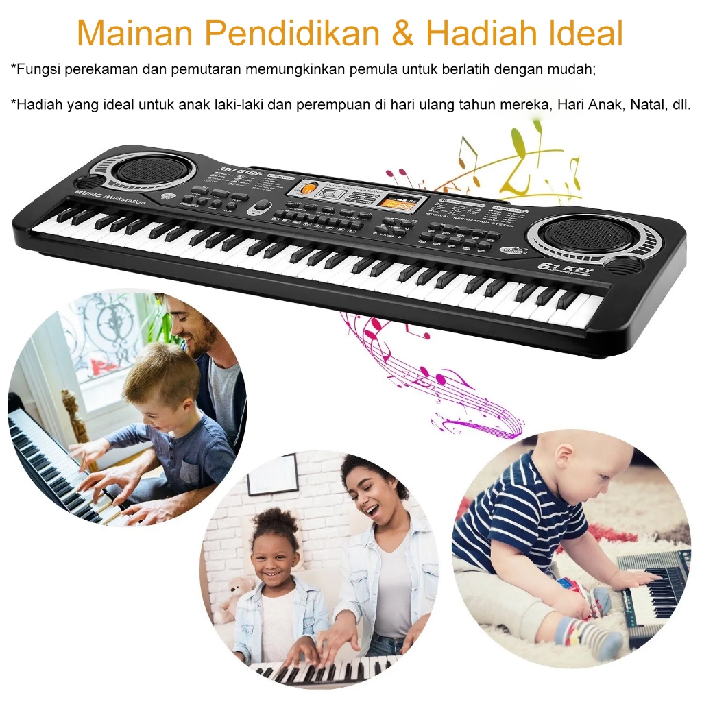 Piano Keyboard Mainan Anak Piano Elektronik 61 Keys Satu Set Mendukung koneksi USB Mic