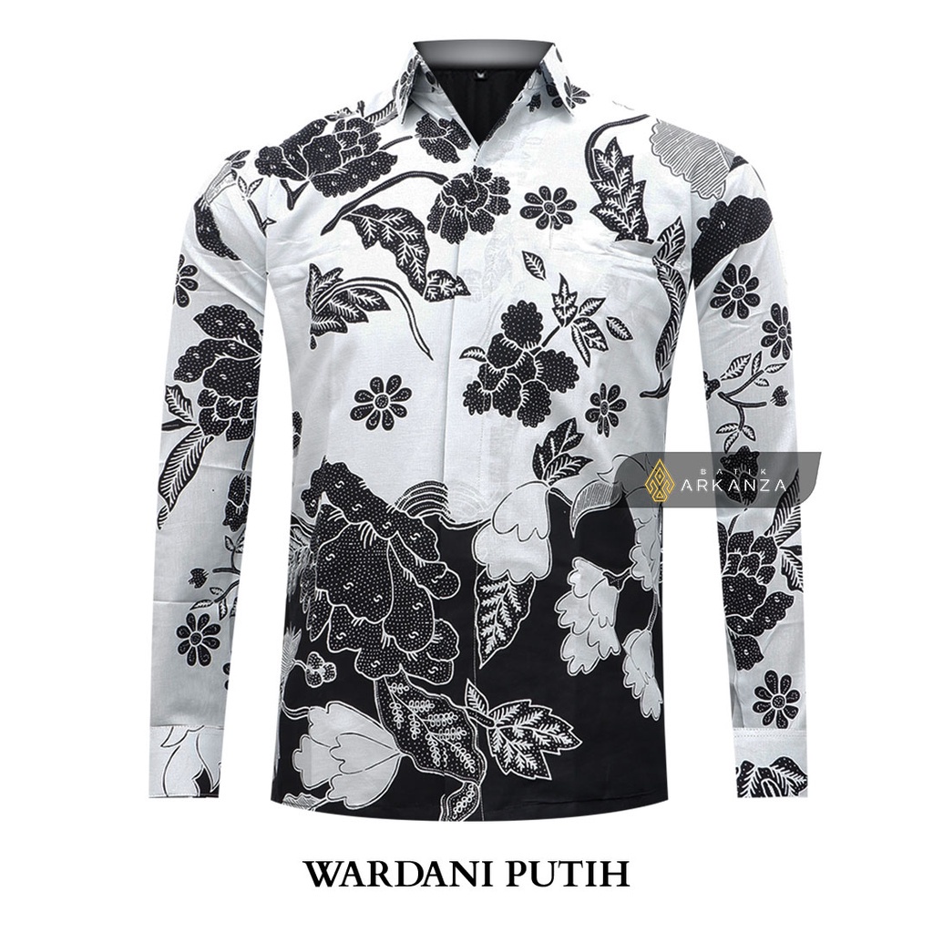 [Star] BATIK ARKANZA Motif WARDANI PUTIH Hem Atasan Kemeja Baju Batik Slimfit Full Lapis Furing