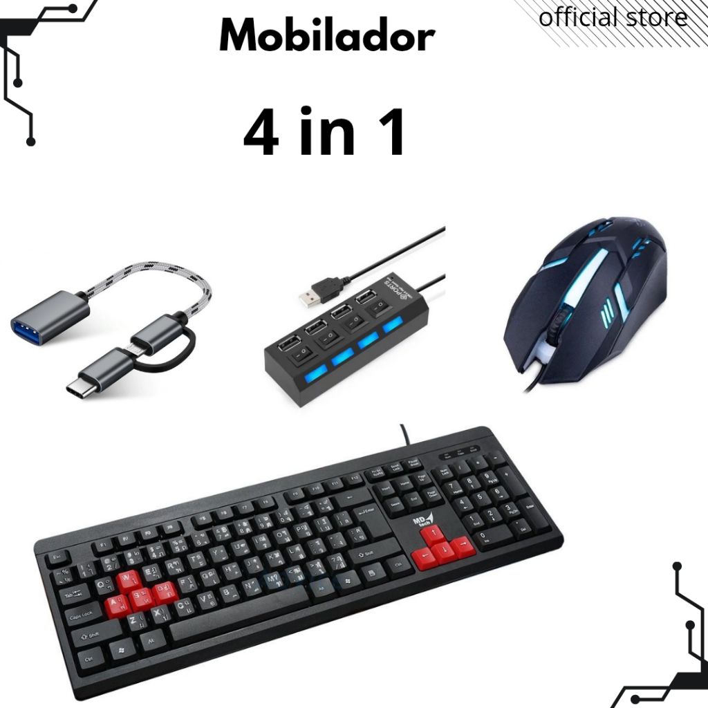 Mobilador game 1set 6 in 1 (Keyboard, Mouse, Usb port, Otg micro/type c,mousepad,holder)