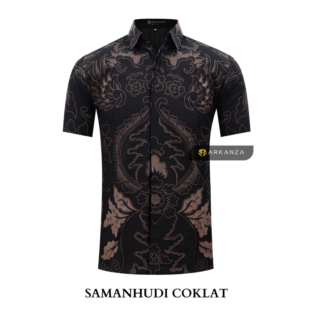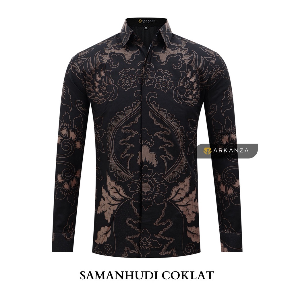 [Star] BATIK ARKANZA PREMIUM Motif SAMANHUDI COKLAT Kemeja Baju Batik Pria Cowok Laki Laki Slimfit Full Lapis Furing
