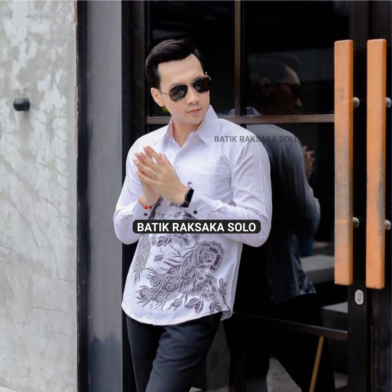 Kemeja Batik Pria Cowok Slimfit Premium Motif AZRIEL Full Furing Baju Lengan Panjang Warna Putih