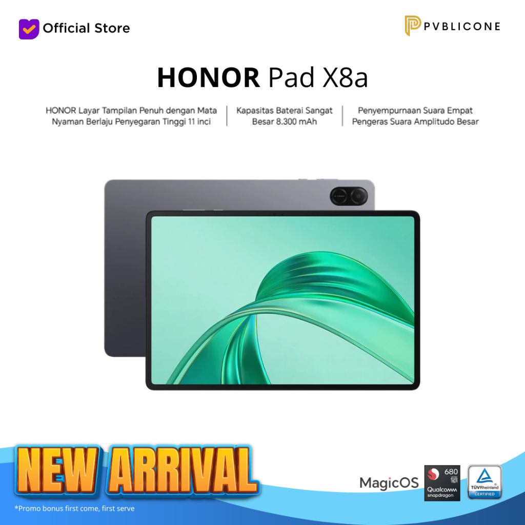 HONOR Pad X8A Tablet Layar 11 inch RAM 4GB + 4GB ROM 128GB Kamera Depan 5MP Belakang 5MP Batrai 8300mAh 4 Speaker