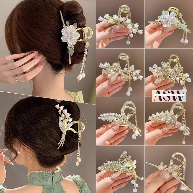 Jepit Rambut Korea Motif Bunga Kupu Kupu Rumbai Mutiara Wanita Jedai Aksesoris Fashion ASW JPT30