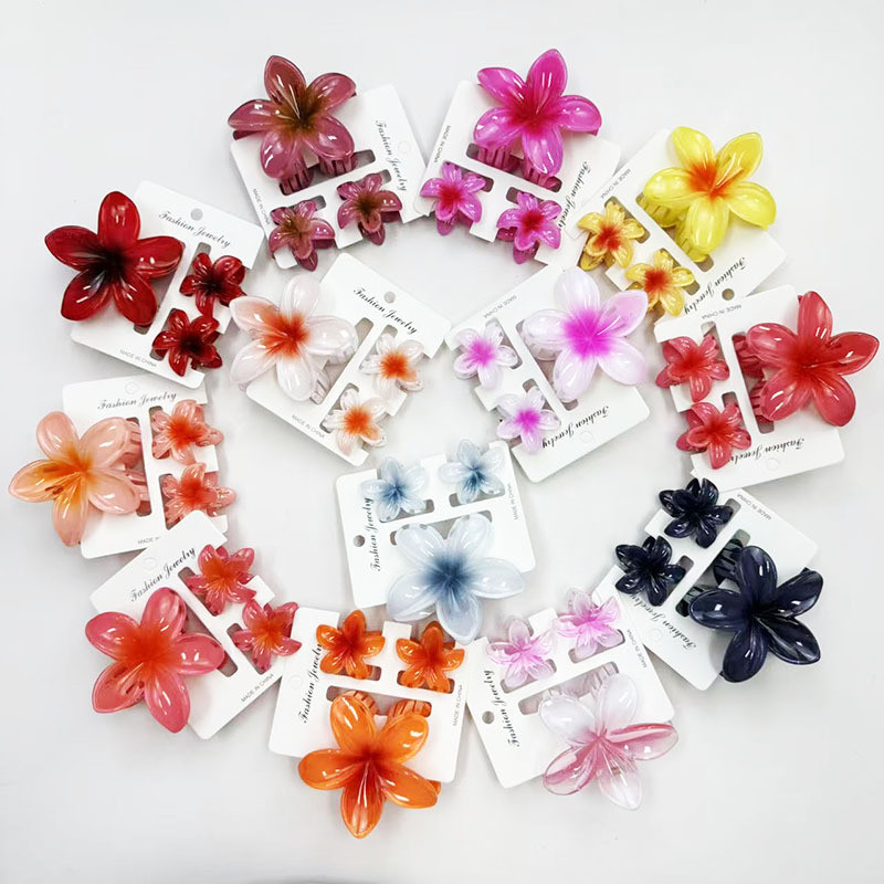 ACC236 Set Jepit Rambut Bunga Kamboja 3in1 Jedai Aksesoris Wanita Akrilik