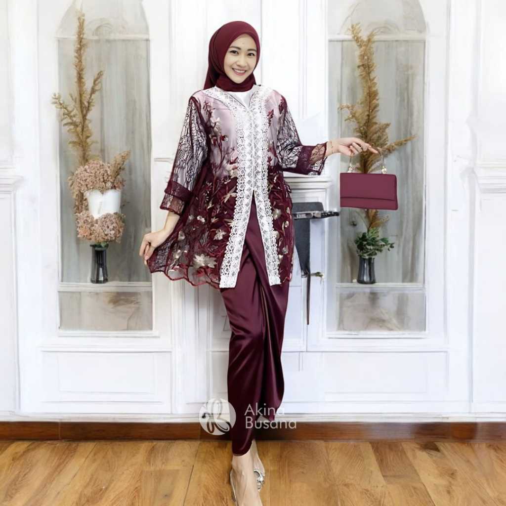 [Star] One Set Kebaya Modern Wanita Kekinian Maiza Tulle Gardenia Warna Mix Renda Full Chantily Halus
