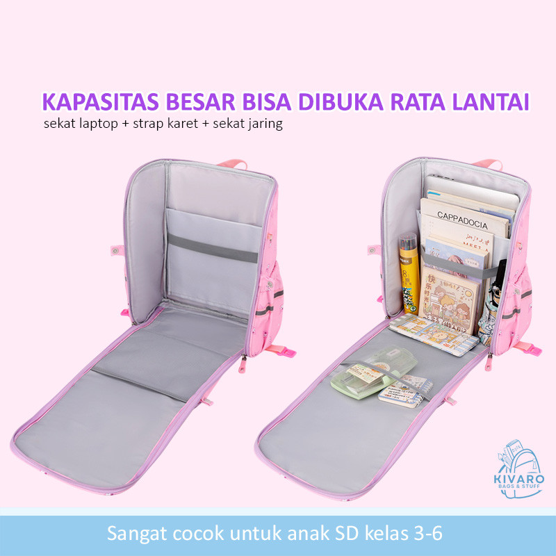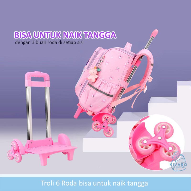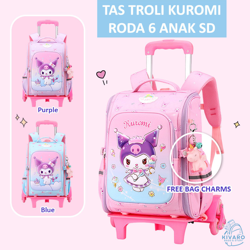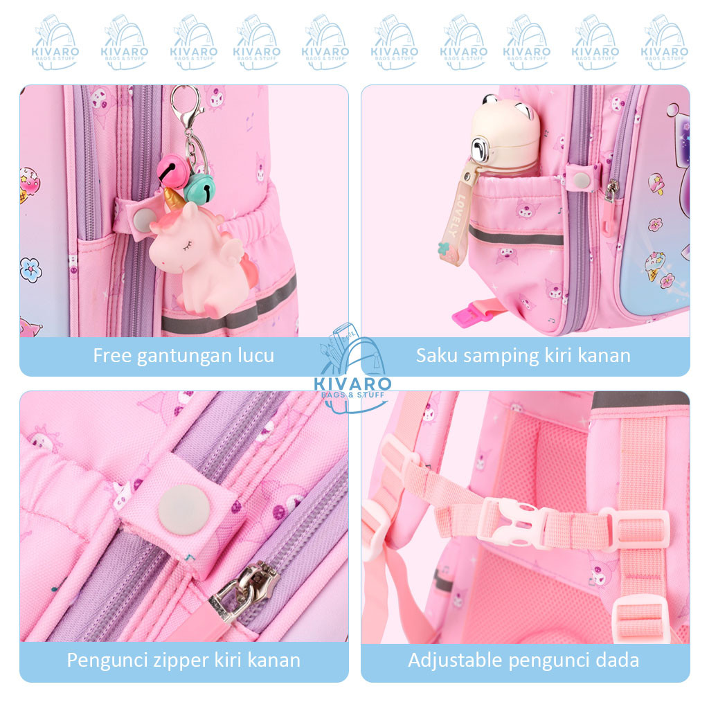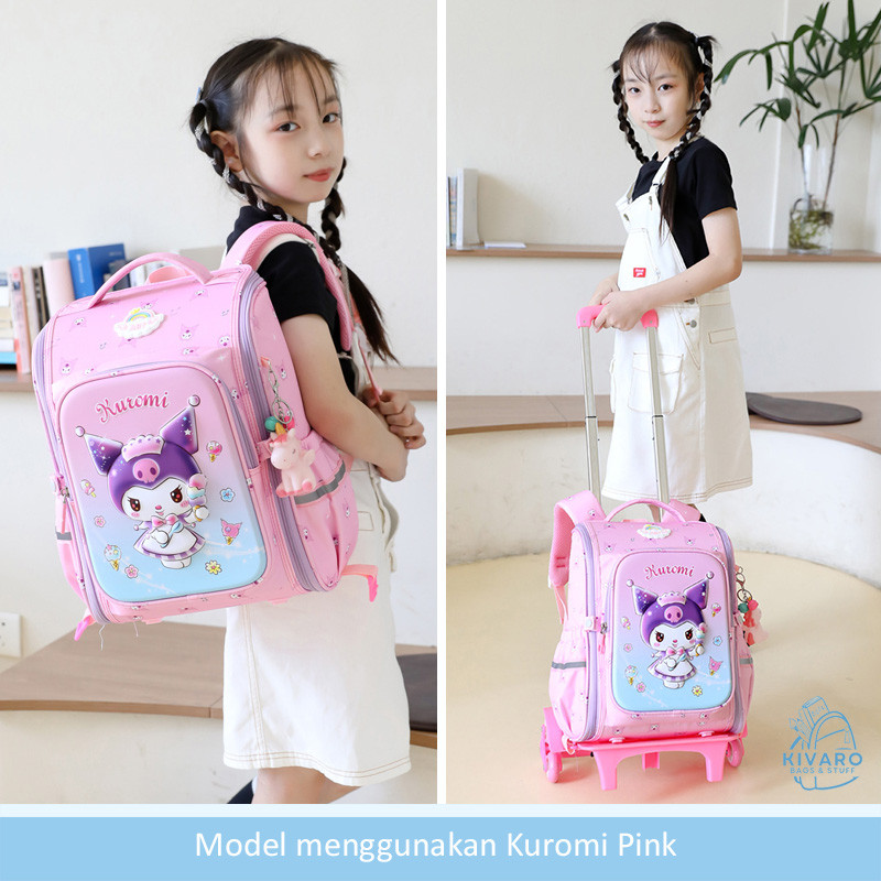 Tas Troli Kurom! Anak Perempuan SD Sedang 38cm Motif Fashion 3D Pink Purple Blue | KV01 Kivaro