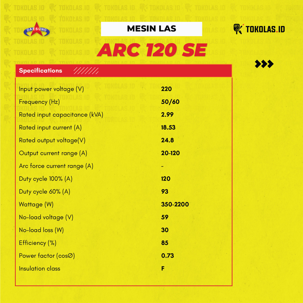 Mesin Las Listrik 450 Watt Travo Las Besi Stainless Stick Inverter Welding Machine Daesung ARC 120 SE Ampere IGBT Korea