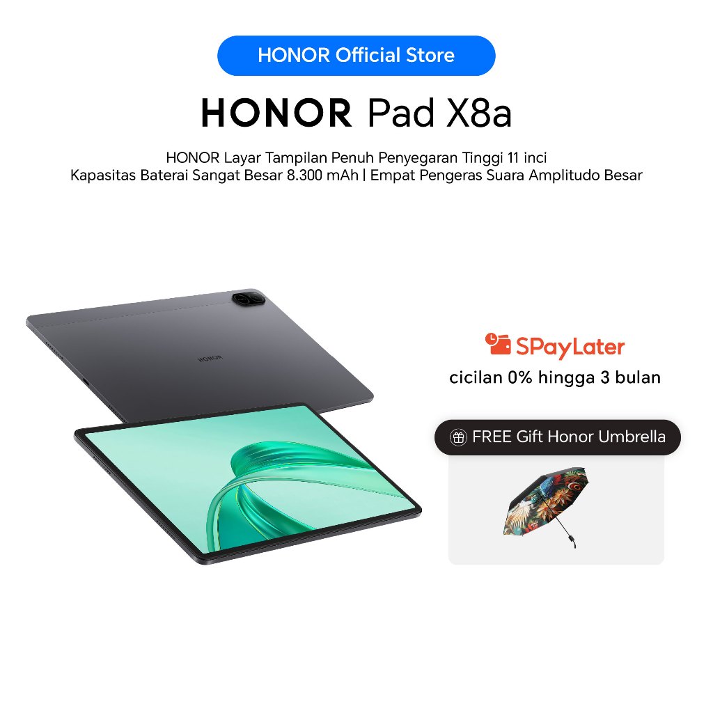 EXCLUSIVE LAUNCHHONOR Pad X8A 4 128GBSpace Grey 5 MP Kamera Utama5 MP Kamera SelfieTFT LCD 8300 mAh