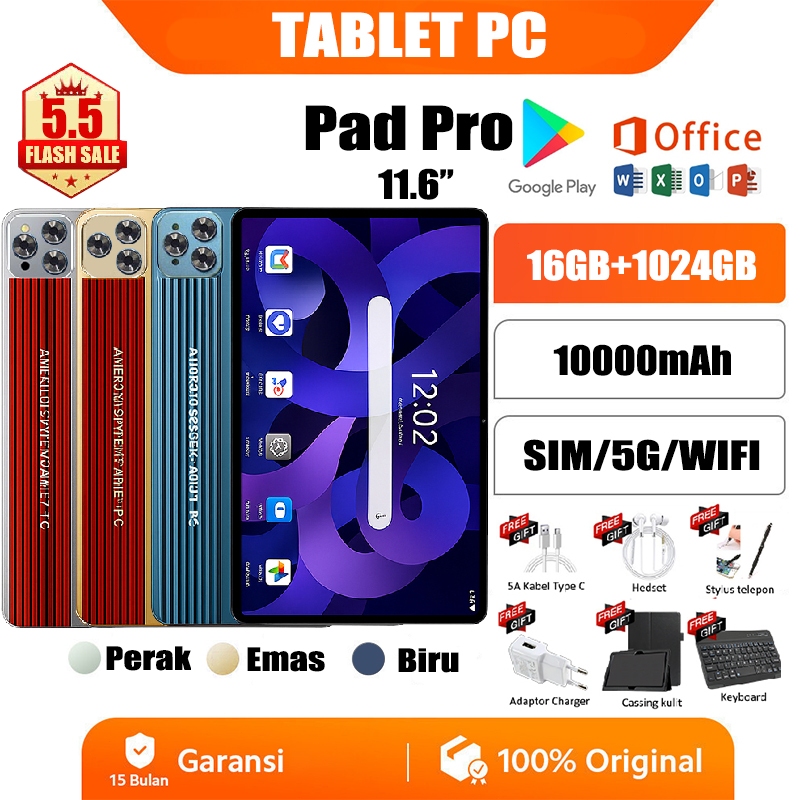 Beli 1 Gratis 7 Tablet PC Baru Tablet Murah RAM 16GB + 1024GB 5G Wifi Cuci Gudang Tablet Android Harga Tablet Gaming Ful