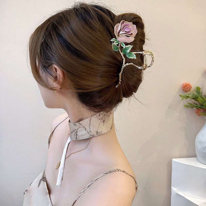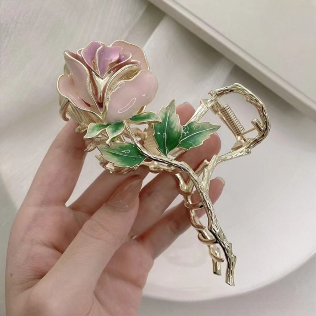 Jepit Rambut Korea Bahan Alloy 11cm JUMBO Motif Bunga Mawar Jedai Model Rose Korean Metal Hair Claw Clip HCM028