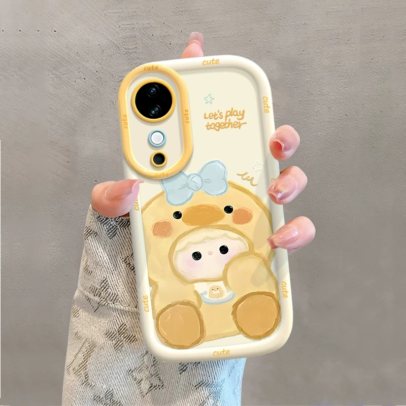 Bebek Kuning Perasaan Puff Silikon Perasaan Premium Baru Yang Tahan Jatuhkan Lucu Sederhana Tanpa Tabrakan Case Cocok Un
