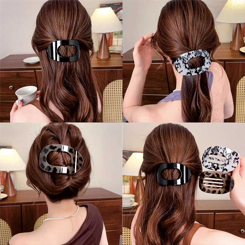 MOLFINE Set Jepit Rambut Oval Pipih 4pcs/6pcs /Jepit Rambut Wanita Retro Pipih Jedai Model Leopard/Aksesoris Rambut Korea