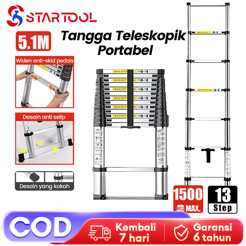 2.7m 3.9m 4.3m 5.1m tangga lipat teleskopik telescopic Multifungsi Telescopic Ladder Tangga Lurus