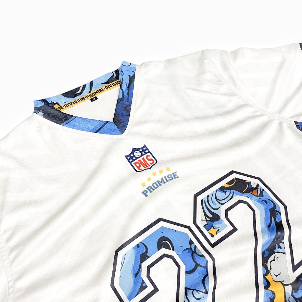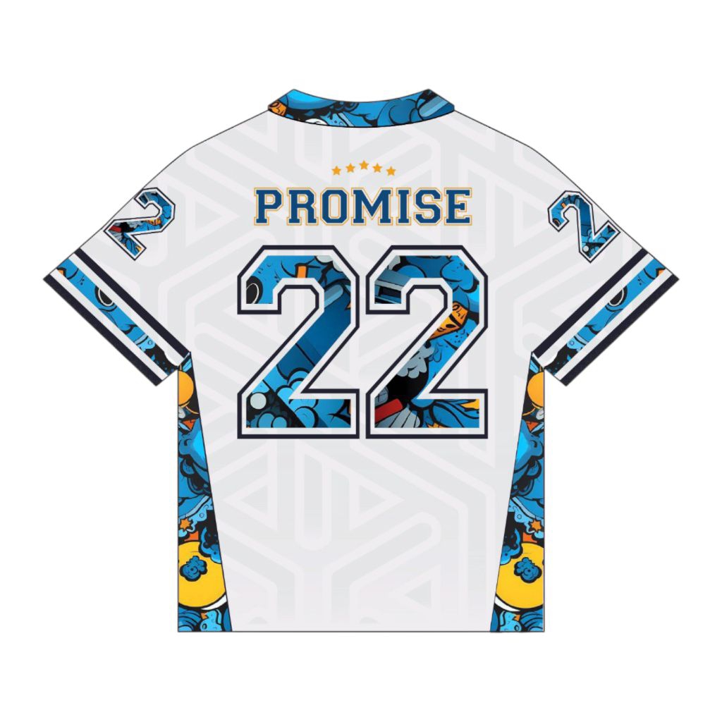 Jersey Boxy Oversize Jumbo PROMISE 22 White Blue Vintage Unisex Pria Wanita Sport Big Size