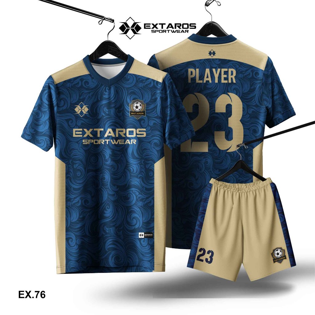 Extaros Jersey Bola Futsal Blue Dryfit Printing Custom