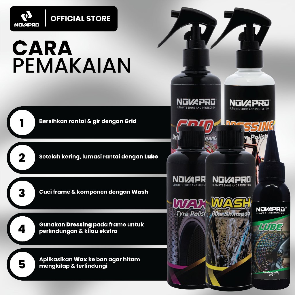 NOVAPRO Perawatan Sepeda Paket 5In1 (Grid, Lube, Drressing, Wax & Wash)