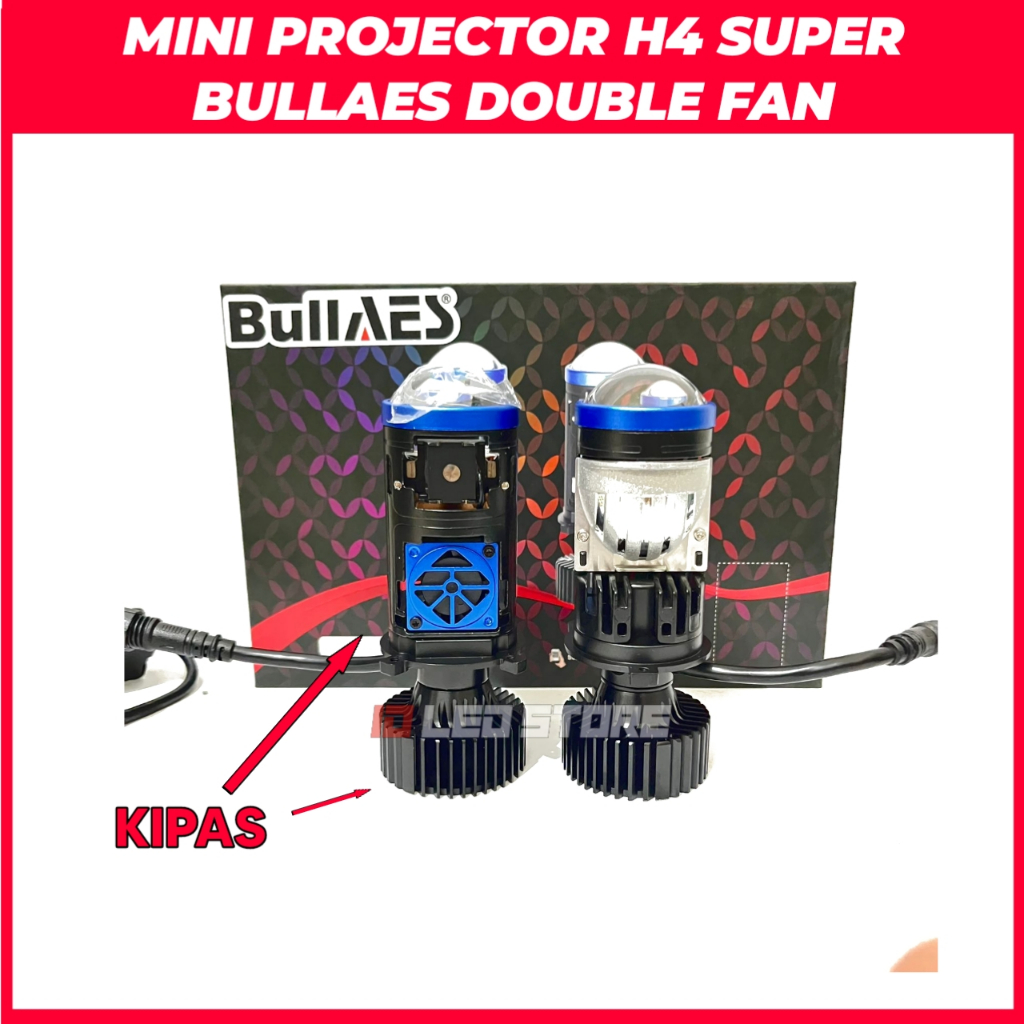 Lampu Led Utama Biled h4 Mini Lens Projector BULLAES H4 SUPER Double Kipas Pendingin