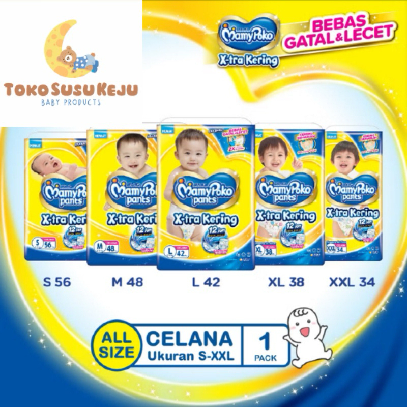 GRATIS ONGKIR 1 Ball PEMPES MAMYPOKO UKURAN S 38 M 32 L 28 XL 26 XXL 24 ISI 50 PEMPERS 1 DUS BABY HAPPY MERRIES EXSTRA