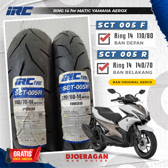 SEPASANG / SATUAN BAN MOTOR AEROX IRC Ring 14 SCT 005 Ring 14 110/80 140/70 TUBELESS